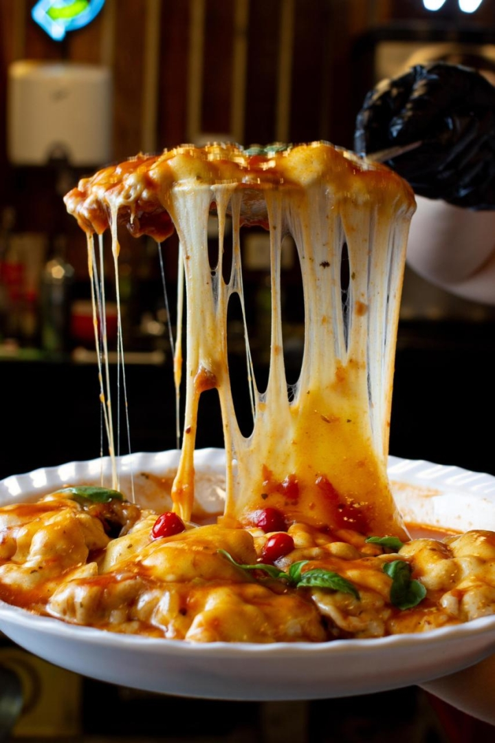 400g Filé mignon à parmegiana, 4 acompanhamentos a sua escolha + batata frita