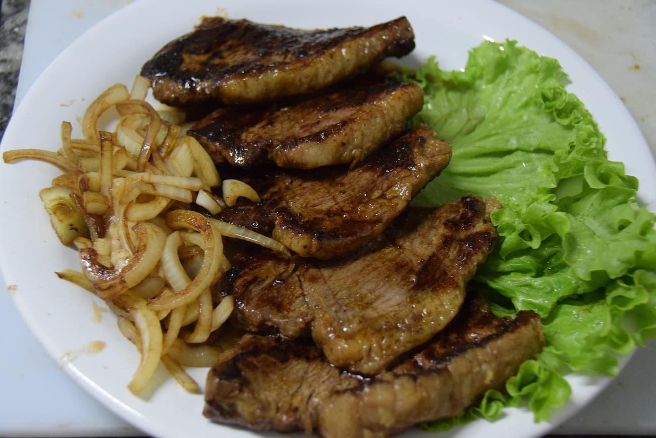 (in natura) 200g contra filé acebolado, arroz, vinagrete e 200g batata frita