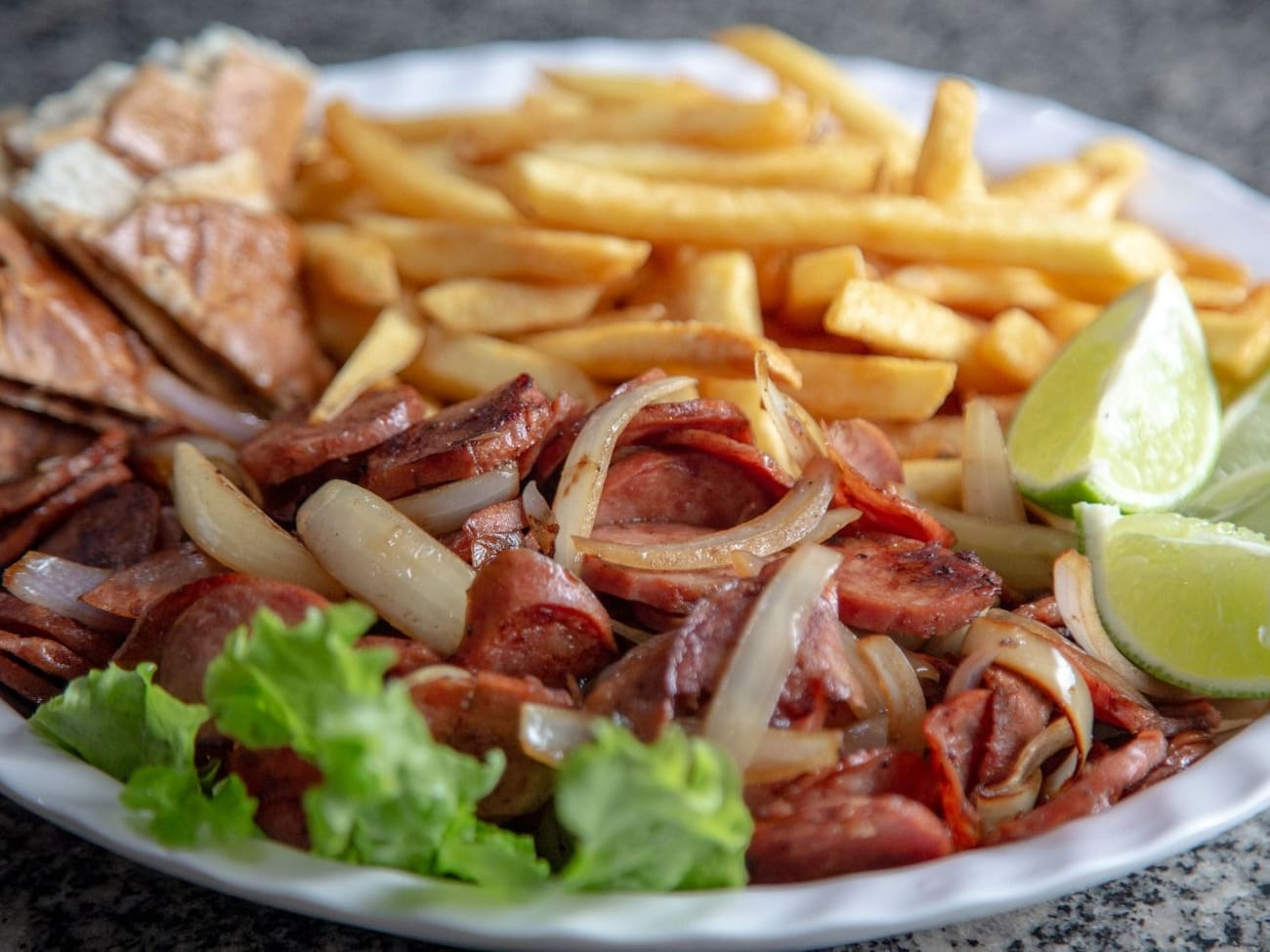 (in natura) 400g de batata frita + 400g calabresa acebolada + pão na chapa
