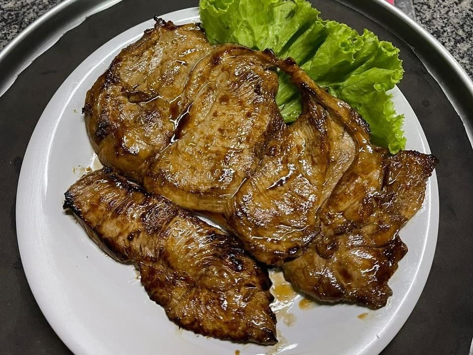 (in natura) 400g de picanha acebolada, arroz, vinagrete, farofa, mandioca e 300g batata frita